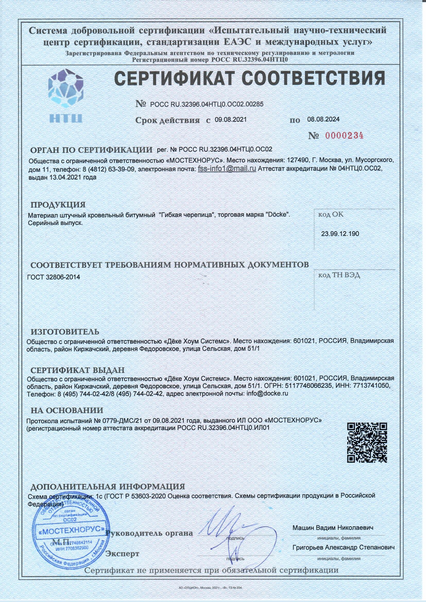 Прочность на разрыв, устойчивость к УФ-излучению и гибкость битумного основания соответствуют ГОСТ 32806–2014. Гарантия на гибкую черепицу серии Premium составляет 50 лет (Standard — 30, Europa — 20)